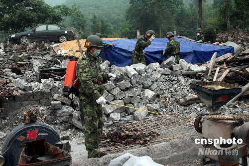 圖:震區(qū)解放軍進(jìn)村入戶加強(qiáng)衛(wèi)生防疫