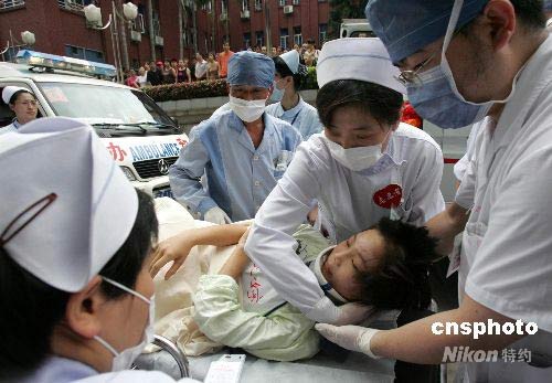 5月25日下午4時55分,從四川地震災區(qū)轉(zhuǎn)運福建省救治的第一批20名傷病員,安全抵達福建醫(yī)大附屬協(xié)和醫(yī)院。福建省首批接收的110名地震災區(qū)傷員,于25日下午和晚上分乘3架專機從成都飛抵福州。傷員們分別安排在南京軍區(qū)福州總醫(yī)院、省立醫(yī)院、福建醫(yī)大附屬協(xié)和醫(yī)院、福建醫(yī)大附屬第一醫(yī)院、省人民醫(yī)院、福州市第一醫(yī)院等6家醫(yī)院救治。中新社發(fā) 楊婀娜 攝