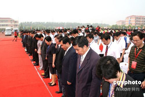 圖:奧運圣火泰州傳遞 向地震遇難者默哀