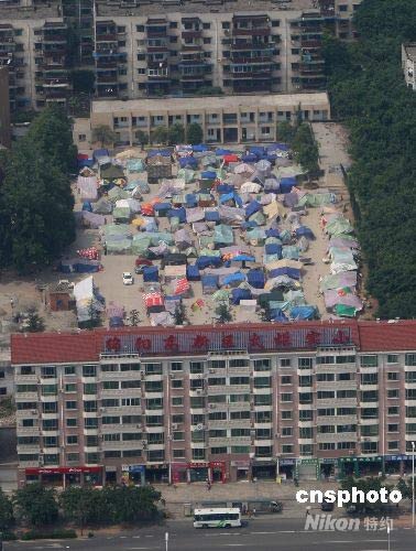 由于天氣的不穩(wěn)定和余震的不斷發(fā)生,眾多綿陽市民還在地震棚里生活。中新社發(fā) 趙振清 攝