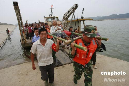 5月30日,四川省遂寧市武警支隊戰(zhàn)士幫助轉(zhuǎn)移船山區(qū)小河洲群眾。當天下午,船山區(qū)政府緊張有序組織小河洲村民緊急撤離預演。由于涪江支流湔江上游唐家山堰塞湖面臨潰堤危險,處于涪江中游的該市各級各部門及時啟動應急預案,并開展有序的撤離預演,確保唐家山堰塞湖潰堤遂寧市零傷亡。中新社發(fā) 鐘 敏 攝