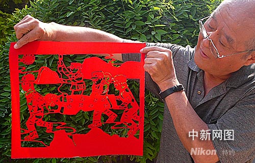 6月5日,山西省侯馬市民間老藝人李傳源展示他創(chuàng)作的“愛在人間”抗震救災(zāi)系列剪紙作品。汶川地震發(fā)生后,老人用兩周的時(shí)間構(gòu)思創(chuàng)作了15幅系列剪紙作品,其中“帳篷學(xué)校開學(xué)了!”、“爭分奪秒 救死扶傷”、“孤兒不孤”、“自力更生 重建家園”等作品,再現(xiàn)了大災(zāi)面前更有人間真情的動(dòng)人場景。表達(dá)了一個(gè)剪紙藝人對災(zāi)區(qū)人民的牽掛和重建家園的良好祝愿。作者:馮文芳
