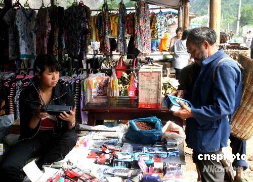 6月8日,濟南軍區(qū)某裝甲團官兵在綿陽市平武縣平通鎮(zhèn)設立了第一家農村集貿市場,幫助受災群眾自力更生。這個市場占地300多平方米,有17個小攤營業(yè),出售各種時令果蔬、肉類、衣服鞋襪以及收音機、手電筒等日用小家電。商品除了當地生產外,主要從江油市采購,價格比地震前低10%左右。中新社發(fā) 畢華明 攝