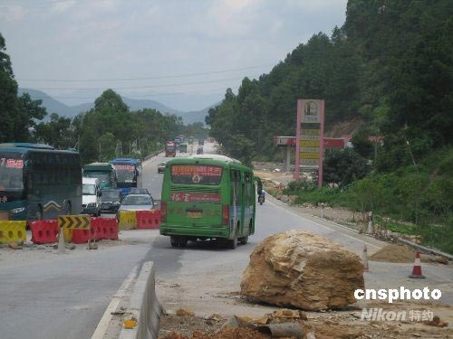 近日,廣東連日的強(qiáng)降雨造成國(guó)道321線肇慶境內(nèi)沿線至少有4起以上大、小山體滑坡,由于當(dāng)?shù)毓凡块T及時(shí)搶修,并采取部分路段單向行駛的措施,該路段未造成車輛堵塞現(xiàn)象。中新社發(fā) 黃耀輝 攝