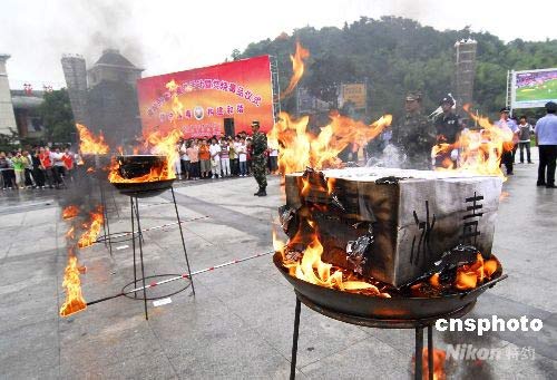 國際禁毒日 浙江溫嶺舉行禁毒宣傳 焚燒毒品