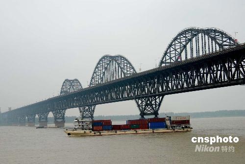 受第6號(hào)臺(tái)風(fēng)“風(fēng)神”影響,江西省連日遭強(qiáng)降雨襲擊,導(dǎo)致長(zhǎng)江江西九江段水位持續(xù)上漲。6月27日,一艘大型貨輪通過(guò)九江長(zhǎng)江大橋時(shí),水位到達(dá)17.3米。雖然距離警戒水位20米還有一定的距離,但由于上游長(zhǎng)時(shí)間的降雨,長(zhǎng)江江西九江段的水位目前正以每天20厘米的高度上漲。九江市各相關(guān)部門已經(jīng)做好準(zhǔn)備隨時(shí)應(yīng)對(duì)各種突發(fā)事件。中新社發(fā) 胡國(guó)林 攝