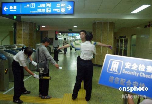 6月29日,安撿人員對(duì)北京乘坐軌道交通的旅客進(jìn)行安全檢查。為維護(hù)北京地鐵的公共秩序,保障奧運(yùn)會(huì)的順利舉行,當(dāng)日起至9月20日,北京對(duì)乘坐軌道交通的旅客所攜帶的物品實(shí)施安全檢查。檢查的重點(diǎn)將放在對(duì)攜帶槍支彈藥、管制刀具、易燃易爆及放射性、毒害性等可能影響公共安全的物品進(jìn)行檢查。中新社發(fā) 富田 攝