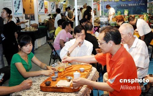 7月3日,為期4天以“綠色、健康、茶文化”為主題的2008大連第四屆國際茶博會暨世界華僑華人以茶會友大會在大連星海會展中心開幕。本屆茶博會,共設展位200余個。展會期間除舉辦茶葉、茶具壺、茶藝賽外,還將舉辦“東北暨環(huán)渤海地區(qū)茶博覽第二次峰會”、“以茶會友”文藝演出、茶健康知識講座、茶葉推廣會、現(xiàn)場炒茶表演等十大活動。中新社發(fā) 劉德斌 攝