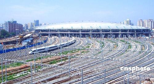 7月6日,北京新南站在藍天的映襯下顯得更加美麗壯觀。當日上午,京津兩地記者以及邀請到的市民代表200多人登上列車,從北京南站出發(fā),平穩(wěn)運行32分鐘后,于9點28分到達天津站,順利完成列車的首次載客試運營。中新社發(fā) 玉龍 攝