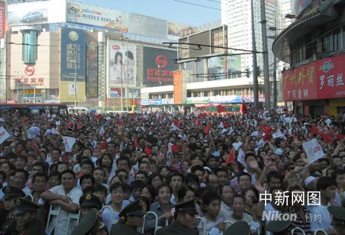 7月7日,奧運火炬在蘭州傳遞,激情澎湃的蘭州市民,為親睹“祥云”,早早的匯集在火炬接力的每一段路邊。劉薛梅 攝