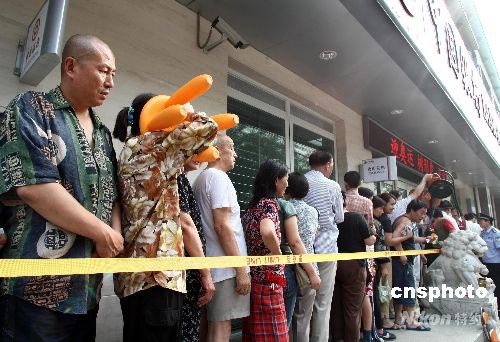 圖:北京市民排隊(duì)等候兌換奧運(yùn)紀(jì)念鈔