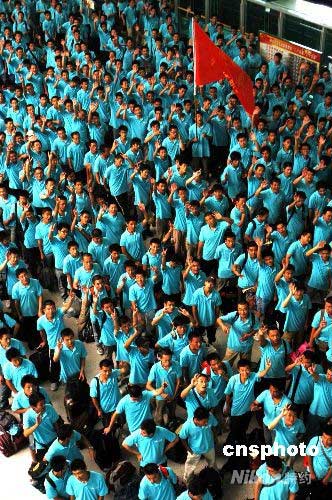 2008年7月11日,來自山東科技職業(yè)學(xué)院的北京奧運(yùn)會安保志愿者準(zhǔn)備出發(fā),奔赴北京。當(dāng)日,山東科技職業(yè)學(xué)院700多名北京奧運(yùn)會安保志愿者整裝趕赴北京,準(zhǔn)備從事北京奧運(yùn)會安保志愿服務(wù)。據(jù)了解,2008北京奧運(yùn)會期間,山東科技職業(yè)學(xué)院共有3000名大學(xué)生去北京擔(dān)當(dāng)安保志愿者,這些志愿者將分八批在近日內(nèi)抵京。