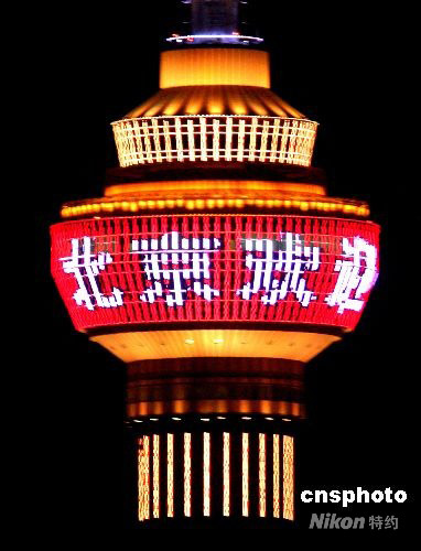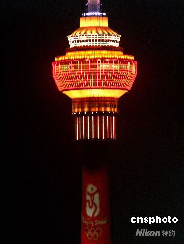 8月1日晚,北京中央電視塔奧運(yùn)主題夜景燈光以“燈籠”造型為主體,將405米高的世界高塔裝扮得美輪美奐,無比壯觀,成為京西一道綺麗奪目的風(fēng)景。中新社發(fā) 趙振清 攝