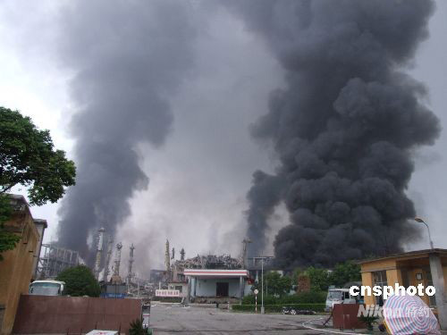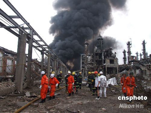 8月26日6時許,廣西宜州市郊的廣西維尼綸集團有限責任公司車間發(fā)生爆炸并引發(fā)大火,截至當日15時30分,醫(yī)院收治傷員增加至55人,死亡人數(shù)增至5人,失去聯(lián)系人員減至14人。 中新社發(fā) 楊繼武 攝