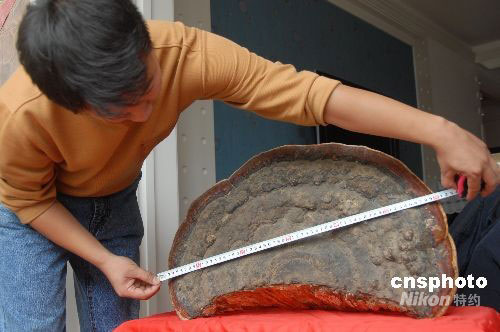 9月1日,黑龍江海林市民李先生家中,一株直徑61厘米、寬42厘米、重9.5斤的巨型野生靈芝。據(jù)李先生介紹經(jīng)省醫(yī)藥專家鑒定,認為形體這么大的野生靈芝最少也得生長百年以上,而且品相這么好實屬罕見。中新社發(fā) 高福貴 攝