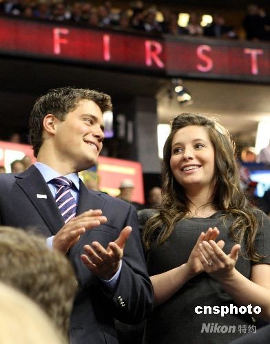 佩林的女兒、懷孕5個(gè)月的布里斯托爾和未婚夫,在共和黨大會(huì)現(xiàn)場(chǎng)為其鼓氣。
