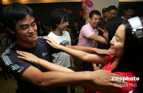 9月6日,北京舉行“尋覓我的精品戀人、MBA精英交友會”,200多名中國TOP10商學(xué)院的MBA精英、企業(yè)精英、才子佳人集體相親。該活動主辦方表示該活動的特別之處在于活動環(huán)節(jié)主要圍繞如何尋覓到相容度高的心靈伴侶展開;閼賹<覀兙脑O(shè)置了“相容式配對”互動游戲,在活動游戲環(huán)節(jié)中融入了“相容成就幸;橐觥钡睦砟,幫助參加互動游戲的單身男女們在配合的過程中碰到愛情火花,從而提高活動的成功率。中新社發(fā) 楊可佳 攝