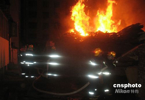 9月9日,黑龍江省哈爾濱市南崗區(qū)西大直街334號院內(nèi)堆放木板等雜物的倉房起火,居住在倉房附近樓內(nèi)的居民安全撤出,消防戰(zhàn)士奮戰(zhàn)到5時30分左右,終于控制火勢。此次火災沒有造成人員傷亡,火災起因還在進一步調(diào)查中。中新社發(fā) 王忠言 攝