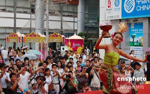 9月12日,由泰國駐南寧總領事館主辦的“2008南寧市泰國風情節(jié)”在廣西南寧開幕,泰國演員的表演吸引了大批攝影愛好者和觀眾。本次風情節(jié)為期三天,通過文藝表演、商品推介等形式全面推介泰國旅游、美食、手工藝品等。中新社發(fā) 劉萬強 攝