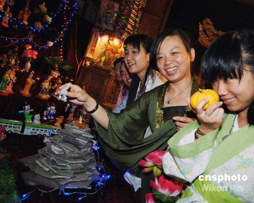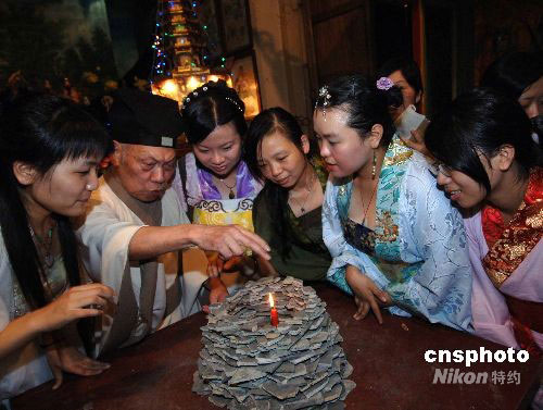 9月13日,五十多名福建漢服愛好者在福州名勝裴仙宮舉行擺塔慶中秋,重現(xiàn)福州民俗。據(jù)傳“擺塔”源于明嘉靖年間戚繼光奉命來(lái)閩抗倭,連打幾場(chǎng)大勝戰(zhàn)。有一次正逢中秋節(jié),為慶祝勝利,人們把古玩等擺在廳堂供人欣賞。過去福州的塔比較多,擺設(shè)品多為古塔狀,故稱“擺塔”。中新社發(fā) 劉可耕 攝