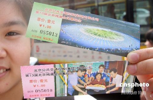 9月17日,一位女乘客展示剛購買的殘奧會閉幕紀(jì)念車票。當(dāng)日,北京市公交集團(tuán)在所屬線路車上,發(fā)售殘奧會閉幕紀(jì)念車票,每張票價(jià)一元。 中新社發(fā) 陳曉根 攝