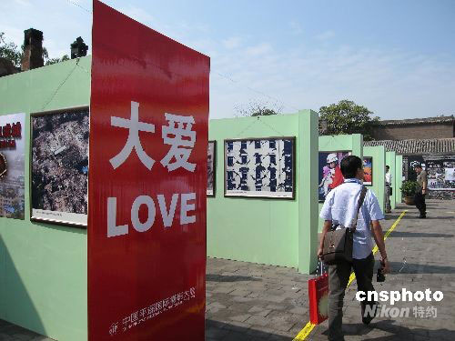 為紀念四川大地震,攝影展專設了特別展區(qū)展出了抗震救災的諸多感人的照片。