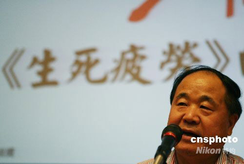 九月二十一日,中國內(nèi)地著名作家莫言在香港中央圖書館暢談《生死疲勞》創(chuàng)作過程。這部小說日前在香港獲得第二屆“紅樓夢獎”。“紅樓夢獎”兩年一評,旨在獎勵世界各地出版成書的杰出華文長篇小說作品。中新社發(fā) 武仲林 攝