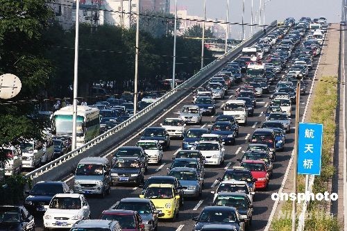 9月22日早8時(shí)15分,北京航天橋上下車流擁堵。當(dāng)日,是北京單雙號限行措施解禁首個(gè)工作日,北京市各條道路恢復(fù)至平時(shí)早高峰交通流量。此外,因諸多原因,北京市將面臨更大交通壓力,交管部門推出九大措施應(yīng)對奧運(yùn)后交通。中新社發(fā) 鄭雄增 攝