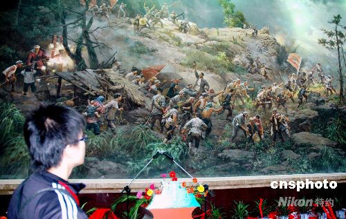 亞洲最大的油畫亮相江西井岡山。該油畫名為《黃洋界保衛(wèi)戰(zhàn)》,長十二米,寬八米,由魯迅美術(shù)學(xué)院的四名教授歷時二個月精心創(chuàng)作而成。作品反映了一九二八年八月,紅軍憑險據(jù)守井岡山黃洋界哨口粉碎進(jìn)行第二次“會剿”的國民黨軍的歷史,描繪了一百多個人物,色彩鮮艷,立體感極強(qiáng)。 中新社發(fā) 段長征 攝