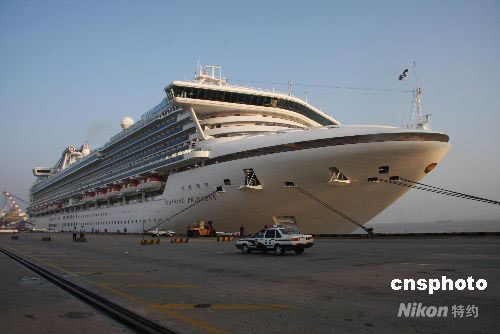 10月9日,百慕大籍豪華郵輪“鉆石公主”號(DIAMOND PRINCESS)訪滬。“鉆石公主”號系世界著名郵輪公司——美國嘉年華郵集團(tuán)旗下公主郵輪公司的一艘超級豪華郵輪,是“公主號”船隊(duì)麾下體積最龐大、設(shè)施最完善的頂級豪華郵輪之一。該郵輪于二零零四年在日本長崎建成下水,被稱作“海上移動的超五星級大酒店”!般@石公主”號將在晚上二十一時離滬前往日本。中新社發(fā) 梁林光 攝