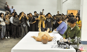 黃淋告訴記者,他表演的目的是將一個(gè)日;膱(chǎng)景變得陌生,讓觀者產(chǎn)生各種各樣的情緒和思考。兩位老太太則不管那么多,她們來(lái)只是為了各自50元的報(bào)酬。兩人都在黃桷坪大街上擺攤擦皮鞋,身邊的人也常常到美院當(dāng)模特,對(duì)裸露這種事也覺(jué)得平常!安了纳眢w,就像給我孫兒洗澡。”其中一位老太太說(shuō)。 (記者 李藜/文 冉文/攝)