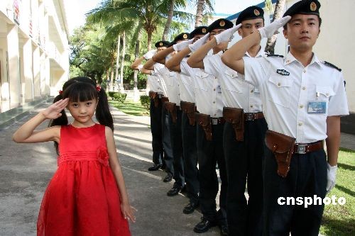 10月21日下午,在北京奧運(yùn)開幕式上一曲成名的小女孩林妙可,利用參加三亞城市精神評(píng)選活動(dòng)暨奧運(yùn)冠軍三亞行晚會(huì)之際,來到海軍駐南國三亞某保障基地標(biāo)桿式單位警勤邊參觀。到該連后,林妙可在趙勛兵副連長的帶領(lǐng)下,參觀了連隊(duì)內(nèi)務(wù)、健身房、榮譽(yù)室。中新社發(fā) 郜宏亮 攝