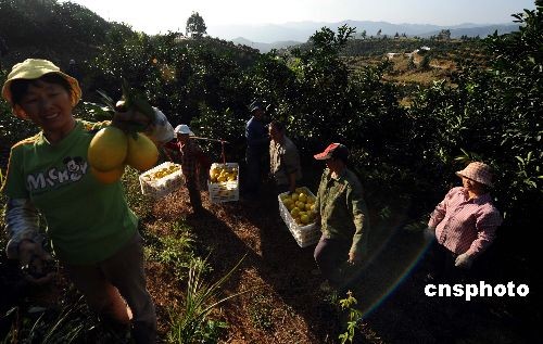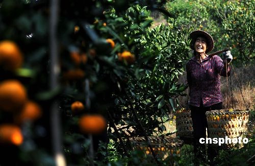 十月底,江西省安遠(yuǎn)縣的臍橙園里,果農(nóng)包裝豐收的臍橙。全國即將迎來柑橘類產(chǎn)品上市高峰。目前,中國各級農(nóng)業(yè)部門已有效控制果樹蛆蟲災(zāi)害,并為消費者推薦優(yōu)質(zhì)柑橘果品。中新社發(fā) 廖攀 攝