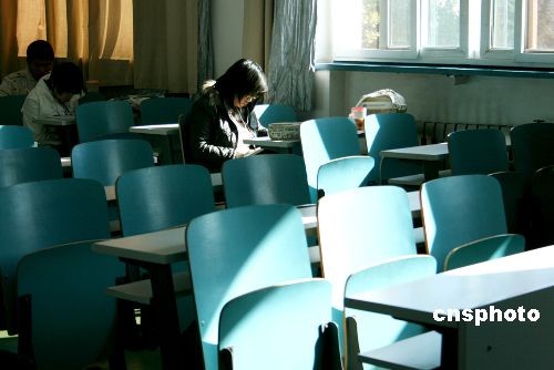 2008年10月31日,中國政法大學(xué)10.28案件的案發(fā)教室開放,上午九點(diǎn)左右,有少許學(xué)生進(jìn)教室,但此教室尚未用于上課。背景:10月28日晚18點(diǎn)43分,中國政法大學(xué)昌平校區(qū)教室內(nèi),教授程春明正在準(zhǔn)備上課時,男學(xué)生付某突然從后門沖入教室,用利器砍向程春明頸部,致其重傷,送醫(yī)院搶救無效,當(dāng)晚7點(diǎn)死亡。付某行兇后報了警,被警察帶走。中新社發(fā) rain 攝