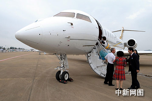 在第七屆中國國際航空航天博覽會上,“環(huán)球快車”、“豪客4000”等公務(wù)機(jī)成珠海航展亮點,不少商家、媒體記者登機(jī)體驗。作 者:陳文