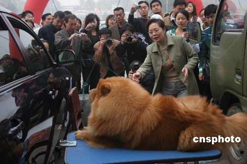 2008年11月15日,市民在武漢國際會(huì)展中心欣賞名犬風(fēng)采。日前,第四屆中國武漢寵物博覽會(huì)在武漢國際會(huì)展中心舉行,海內(nèi)外約500條名犬匯聚一堂,同臺(tái)競(jìng)秀。據(jù)了解,本次參展的犬只,均來自美國、新加坡、韓國以及國內(nèi)20多個(gè)省市地區(qū);身價(jià)過百萬元的名犬有20余條,其中最高的當(dāng)屬2000萬元的藏獒;此外,在國際國內(nèi)頂級(jí)賽事中獲得全場(chǎng)總冠軍的犬只也有10多條。中新社發(fā) 孫新明 攝