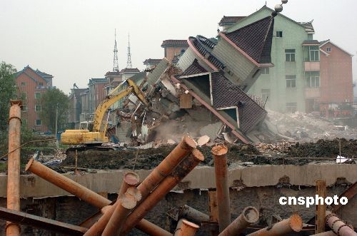 圖:杭州地鐵塌陷事故附近房屋已全部推倒