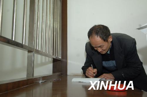 11月18日,周正龍?jiān)谘柨h看守所辦理相關(guān)手續(xù)。周正龍?jiān)?1月17日晚22時(shí)30分二審法院改判緩刑后,于18日上午11時(shí)許,在旬陽縣看守所辦理完相關(guān)手續(xù)后,離開看守所回家。新華社記者丁海濤攝