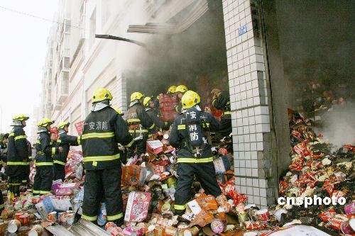 11月19日中午11點(diǎn)45分許,四川省廣安市 “康師傅”方便面廣安地區(qū)總代理的倉庫里價(jià)值60多萬的貨物被無情大火燒掉大半。事發(fā)后,廣安區(qū)公安分局110巡警大隊(duì)、市區(qū)消防大隊(duì)第一時(shí)間趕到現(xiàn)場,開展了滅火工作。據(jù)了解,失火的兩個(gè)門市面積大約有100平方米,里面裝了60多萬元的貨物,這次損失至少達(dá)40萬元左右;馂(zāi)原因正在調(diào)查之中。中新社發(fā) 廣宣 攝