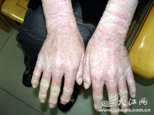 從生下來(lái)開(kāi)始,全身皮膚就紅腫脫皮,現(xiàn)在已經(jīng)23歲的余干縣余小姐的皮膚就像老人的皮膚一樣粗糙。