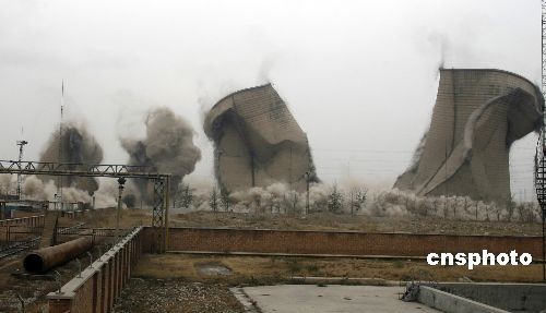 11月23日,華能天津楊柳青熱電廠四座發(fā)電冷卻水塔,被成功爆破拆除。據(jù)介紹,四座水塔建設(shè)于上世紀(jì)70年代,高度為60-90米,是燃油發(fā)電機(jī)組冷卻水的專用設(shè)施。圖為爆破瞬間。中新社發(fā) 段毅剛 攝