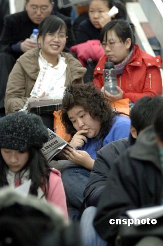 11月29日,大型部委聯(lián)合招聘會(huì)在北京中國(guó)國(guó)際展覽中心舉行,中科院、時(shí)代集團(tuán)、中國(guó)日?qǐng)?bào)社、百度等700多家單位招攬人才,近萬(wàn)個(gè)工作崗位令求職者趨之若騖。據(jù)悉,金融危機(jī)下的就業(yè)形勢(shì)不容樂(lè)觀,許多應(yīng)屆畢業(yè)大學(xué)生主動(dòng)降低薪酬期望值,以期盡快就業(yè)。中新社發(fā) 徐曦弋 攝