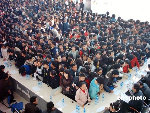 圖:地方招聘會(huì)火爆 人才市場(chǎng)水泄不通