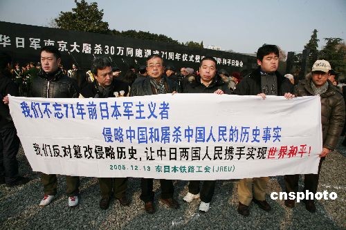 13日上午10時(shí),凄厲的警報(bào)在南京城上空拉響,江蘇省暨南京市各界代表以及海內(nèi)外和平友好人士近5000人在侵華日軍南京大屠殺遇難同胞紀(jì)念館舉行集會(huì),悼念南京大屠殺30萬同胞遇難71周年,日本和平友好人士應(yīng)邀參加。中新社發(fā) 鐘山 攝