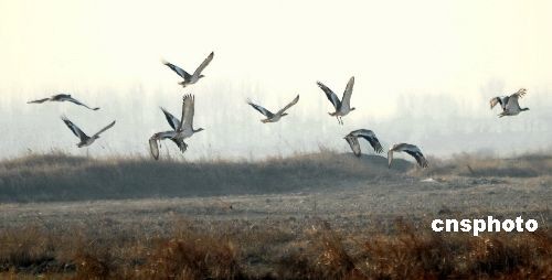 12月14日,120多只大鴇出現(xiàn)在河北滄州海興縣農(nóng)田中。大鴇屬國家一級重點保護動物,雖然分布很廣,但在世界范圍內(nèi)的種群數(shù)量都普遍處于下降趨勢。大鴇在我國的種群數(shù)量曾經(jīng)是相當(dāng)豐富的,但近年來數(shù)量已經(jīng)變得相當(dāng)稀少,估計目前總數(shù)僅有300—400只。據(jù)了解,這么大集群數(shù)量是近年來所罕見的。中新社發(fā) 王少華 攝