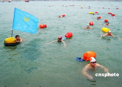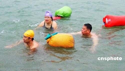 2008年12月21日是二十四節(jié)氣中的冬至,在湖北宜昌市鎮(zhèn)江閣長(zhǎng)江段,冬泳健兒在橫渡長(zhǎng)江。當(dāng)日下午,宜昌市舉辦第22屆冬季橫渡長(zhǎng)江活動(dòng),264名冬泳健兒挑戰(zhàn)嚴(yán)寒成功橫渡長(zhǎng)江,游程1500米。據(jù)悉,宜昌市已連續(xù)22年舉辦冬季橫渡長(zhǎng)江活動(dòng)。中新社發(fā) 任衛(wèi)紅 攝