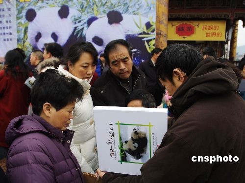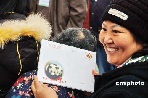12月23日,四川雅安市發(fā)售贈臺大熊貓團團圓圓相關(guān)郵品。市民排隊熱情購買,雅安市委副書記張錦明、副市長譚向紅等現(xiàn)場為市民簽名售郵品。中新社發(fā) 張國軍 攝