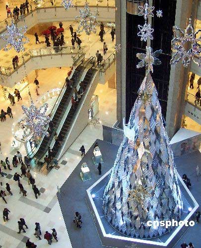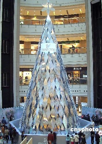 12月24日,高達(dá)17米的“水晶圣誕樹”亮相上海2008年圣誕節(jié)。這棵圣誕樹是某水晶制品公司特別打造全國規(guī)模最大、造價過千萬的仿水晶圣誕樹。閃爍高聳的水晶光芒傳遞無限圣誕祝福。中新社發(fā) 紹常 攝