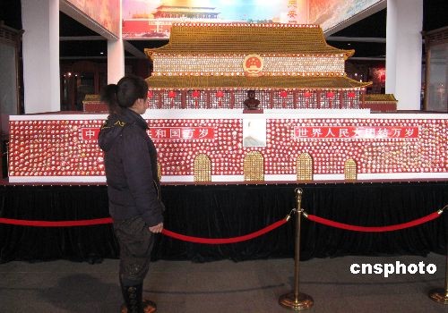 全國政協(xié)委員、著名毛澤東像章收藏家陳德,不僅建有中國最大的毛澤東像章陳列館,而且還在國外建有以展出毛澤東像章為主的中國文化展覽館,在國內(nèi)國外同時(shí)展出毛澤東像章20余萬枚。圖為陳德的位于大連市金石灘旅游度假區(qū)內(nèi)的毛澤東像章陳列館一角,該館現(xiàn)在每年接待參觀者40余萬人次。中新社發(fā) 沈殿成 攝