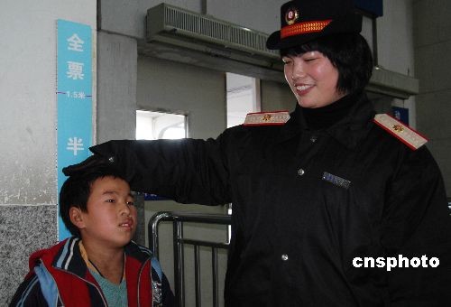 2008年12月25日,蘇州火車站更換了一批兒童票身高標(biāo)識牌。據(jù)了解,從12月21日起鐵道部決將乘坐火車時購買兒童半價票的參照身高標(biāo)準(zhǔn)調(diào)整為1.1米至1.5米。相比原來1.1米至1.4米的標(biāo)準(zhǔn),新標(biāo)高的上限高出了10厘米。中新社發(fā) 朱子寒 攝